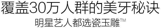 瓷玉雕™擁有瓷玉雕(超聲波潔牙、皓齒美白、牙貼面、仿生牙冠)4大明星產品,針對色素牙、畸形牙、缺損牙等癥狀,都打造出白玉般的美麗而堅固的牙齒,塑造完美笑容曲線,是很多明星藝人的美牙首選。